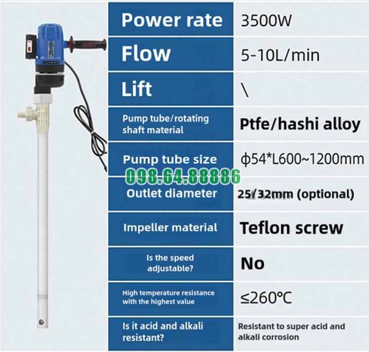 Bơm hóa chất thùng phuy công nghiệp JDT-3500W-PTGELG được đánh giá cao nhờ khả năng vận hành êm ái, ổn định, giúp nâng cao hiệu quả làm việc và giảm hao mòn thiết bị.