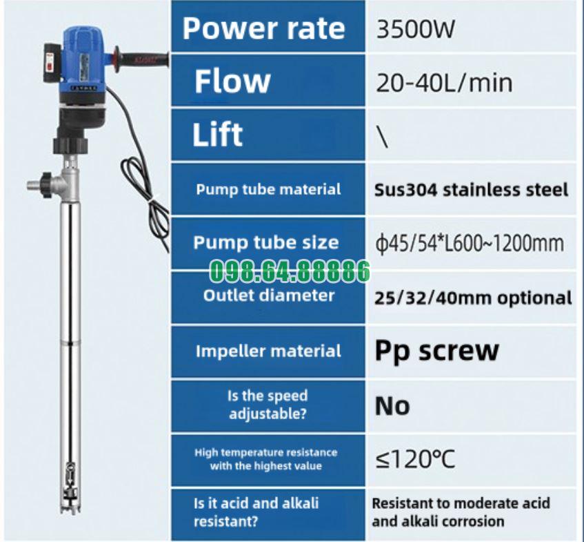 Máy bơm công suất cao cho thùng phuy JDT-3500W-LGG120