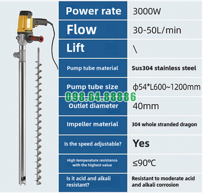 Máy bơm điện hút dung dịch thùng phuy công nghiệp 3000W JDT-3000W-YT