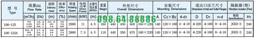 Máy bơm trục thẳng đứng, bơm lắp thẳng trục đứng ISG100-125, IRG100-125 11kw, 100m3, 20m