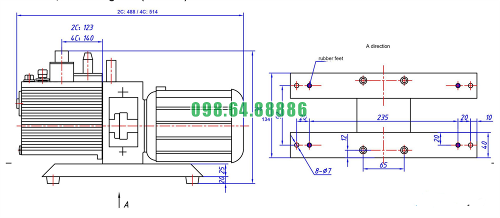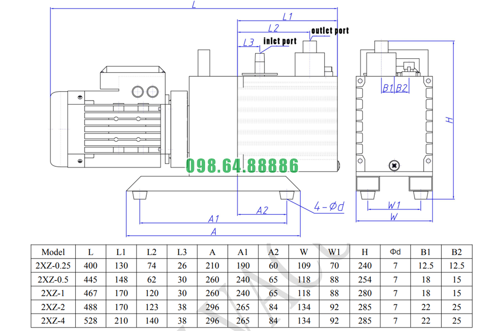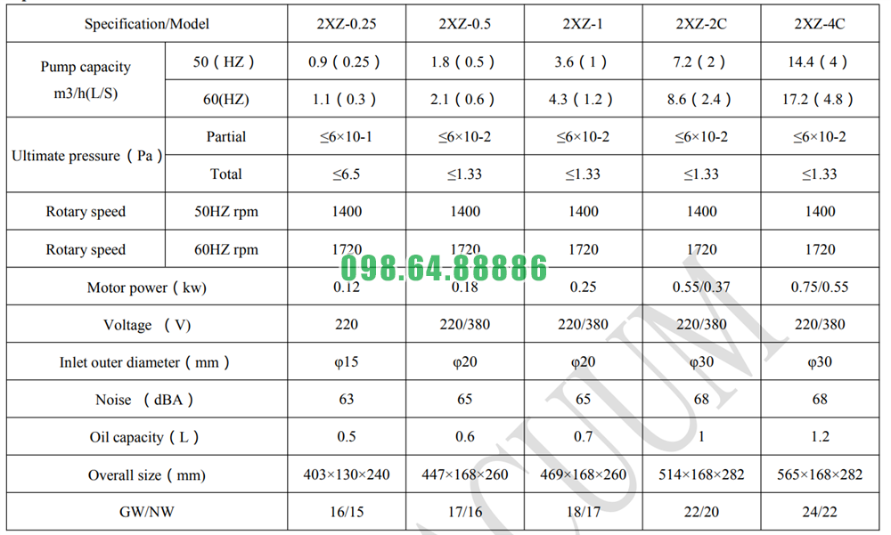 Bơm chân không cấp đầu model 2XZ-2 lưu lượng 7.2 m3