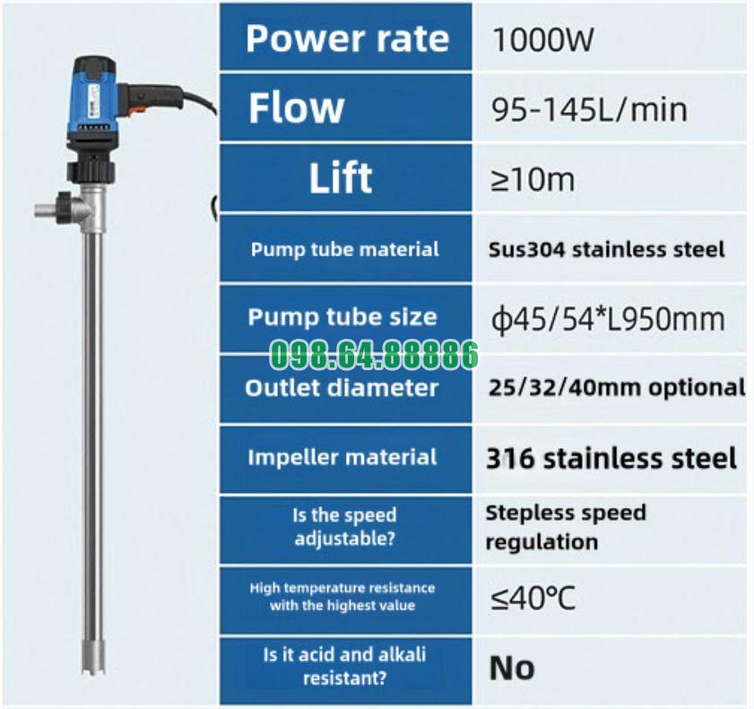 Với Bơm cắm điện thùng phuy JDT-1000W-304SUS, việc bơm chất lỏng nhớt cần kiểm soát tốc độ và thời gian vận hành để giữ sự ổn định.