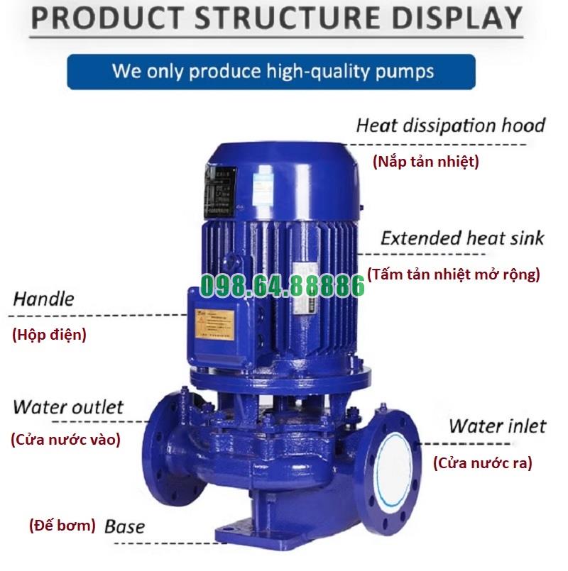 Máy bơm tăng áp trục đứng, bơm đường ống model ISG80-315, IRG80-315 37kw, 50m3, 125m